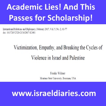In critiquing an academic paper that was published in the journal, International Relations and Diplomacy, I found a blatant lie that made my blood boil. In another post critiquing this same article, I showed how common myths demonizing Israel have found their way into scholarly writing published in academic journals. Here I want to contest one point only. In the February 2017 issue of the journal, Prof Franke Wilmer published an article entitled, Victimization, Empathy, and Breaking the Cycles of Violence in Israel and Palestine. On page 75, in her conclusions, she makes the following statement: Doubi Schwartz, former General Manager of the Parents Circle Families Forum, a group of 600 families from both sides who have lost loved ones to the violent conflict, explained that members of the organization visit high schools in teams of one Palestinian and one Israeli family member to tell their stories of loss and their plea for peace and nonviolence. “Some of the schools in Israel will not let us bring a Palestinian in, and for many who do, it is the first time they have encountered someone from the other side”. [emphasis mine] The lie is shown in bold font. I explored the organization’s website looking for material regarding the high school project. Finding nothing but old news, I called the Israeli office of the Parents Circle Family Forum and spoke with Iris Meisler, the office manager, who asserted that they are working on the website to bring it up to date and she was willing to answer my questions. Regarding the high school project, she said that they have not yet been given permission to bring an Israeli member of the team into schools in the Palestinian Authority. ALL the schools into which they are given permission to present their programme are Israeli schools, and any school that would refuse to have a resident of the PA co-present would simply not be approved by the organization for holding a session. So perhaps one could say that Wilmer did not exactly lie — she just told the story in such a way as to give a totally unfounded impression. I have no doubt that SOME Israeli schools would not welcome a programme that features a resident of the PA. However, by not writing that NONE of the PA schools allowed an Israeli team member, she is leading the reader to believe that there is no problem conducting the high school programme in the PA. To get further information, I spoke with Osama Abu Ayash, Project Coordinator for the organization in the PA. He clarified that there are a small number of programmes carried out in the PA — one could say that for every nine sessions held in Israel, one is held in the PA. Furthermore, the sessions held in the PA do not take place in the schools, but, rather, in a community center or other venue. This is because schools are not willing to take responsibility for the security of Israeli visitors. Furthermore, as opposed to the situation in Israel, sessions may be held with only the Palestinian Arab member of the team and not the bi-national team required for sessions to be held in Israel. So — do you consider withholding part of the story as lying when the withholding leads to a false impression? I do. Now, why would Wilmer want to give this false impression? Could it have anything to do with her possibly supporting academic BDS against Israel? Well, I did not find anything linking her to support for academic boycott of Israel, but I did find out that she is a board member of the Congregation Beth Shalom in Bozeman, Montana. Perhaps she just believes that by making Israel out to appear to be the evil party in our part of the world, she can help break what so many regard as the Israel “occupation”. I guess she does not believe that the whole truth and nothing but the truth would do the trick! And I wonder what that says about her lofty goal of breaking the “occupation”. And I also wonder why she thinks this qualifies as scholarly writing. Post navigation Academic Propaganda Against Israel Masquerading As Legit Scholarship UNGA Recognition of “Palestine”: Does It Matter?