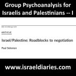 In Part 1 of this series, I critiqued the conclusion of a recently published paper by psychotherapist Paul Solomon. He discusses how group psychoanalysis can help us understand the itchy persistence of the conflict between Israeli Jews and those Arabs-who-now-like-to-call-themselves-Palestinians. . . . And how to resolve it! Let us now go to the beginning of the paper and look at it in more detail. (Abstract available here.)
