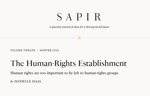 Danielle Haas is going to have a conversation with Bret Stephens on April 1 about her new article in Sapir, “The Human Rights Establishment.” I was engrossed in her fascinating description of her experiences with Human Rights Watch (HRW) and other so-called human rights organizations and I hope to get the chance to ask her a question about one sentence that was particularly jarring for me. It disturbed the flow of the article, and I am curious about why she felt it necessary to write it.
