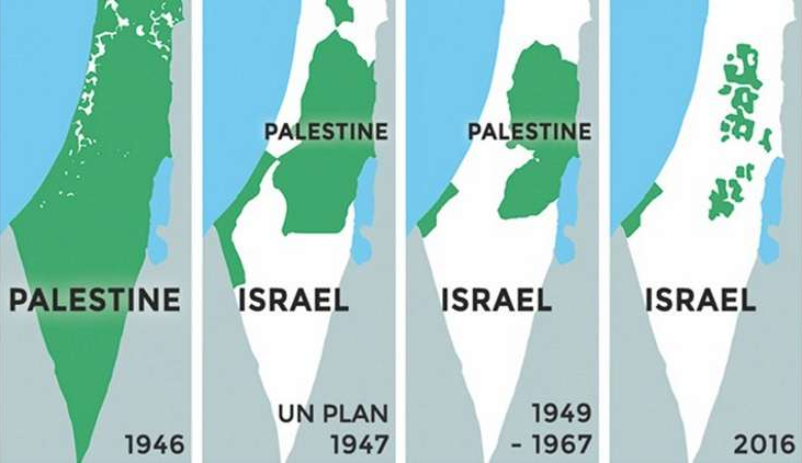 Figure 1. Palestinian loss of land (1946 to 2016) Source: Bailey, 2016; Kay, 2018)