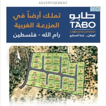 Perhaps many non-Arabic-speaking readers just ignored this ad as irrelevant to them. A Hebrew speaker would recognize the English word on the ad – Tabo. This is Turkish for land registry ownership and is used in Israel and the Palestinian Authority (PA). Curious readers may click on the link to the Tabo website.