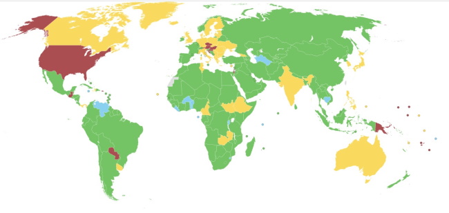 Here is how the voting on the three resolutions covered in this article shows on the map of the world, where brown is those who opposed the resolutions, green is those in favour, yellow is abstentions, and blue is absentees: